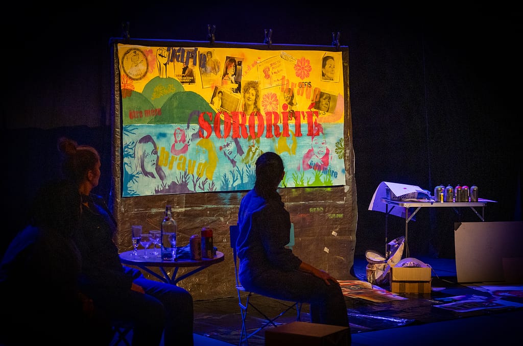 En tirant des fils de leurs histoires personnelles, et en s’inspirant de récits de vie de femmes intimes ou lointaines, elles tissent une histoire commune à toutes, au cœur de laquelle le désir et les rêves ont toute leur place. Devenues par la force des choses de véritables sportives du quotidien, elles se livrent avec force et sincérité pour faire entendre leur(s) voix, en traçant une fresque théâtrale et plastique, à l’image de la sororité qui les lie désormais.